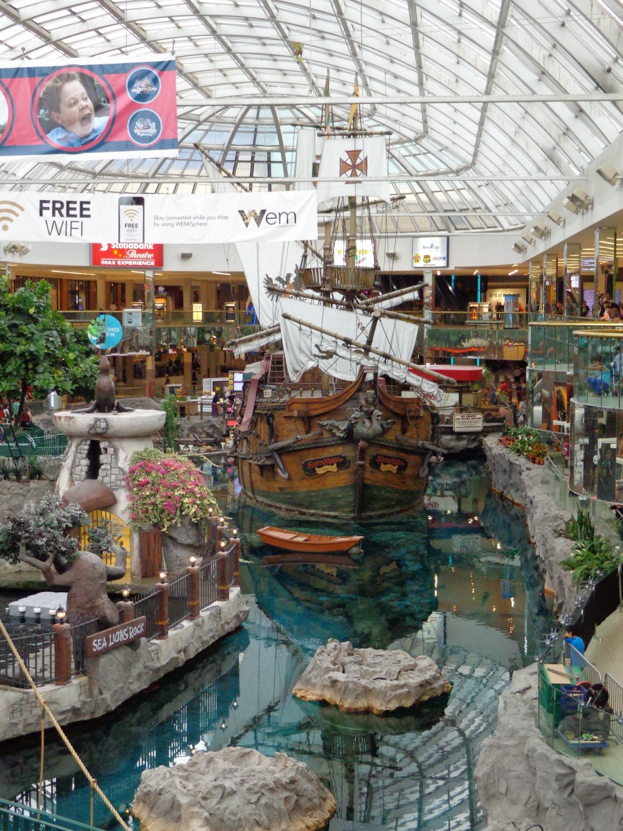 Heute sind wir mit viel Regen und Gewitter auf dem Weg in die Rocky Mountains in Edmonton gelandet, wo wir uns das größte Einkaufscenter der Welt angesehen haben. Waren artig, haben uns nur einen Kaffee gegönnt 🙂 Es sind nicht die Läden die das Center ausmachen, sondern man kann darin Schlittschuhlaufen, Wasserrutschbahn und Wellenbad genießen, Piratenschiffe ansehen oder die Fische im chinesischen Supermarkt beschnuppern!!!