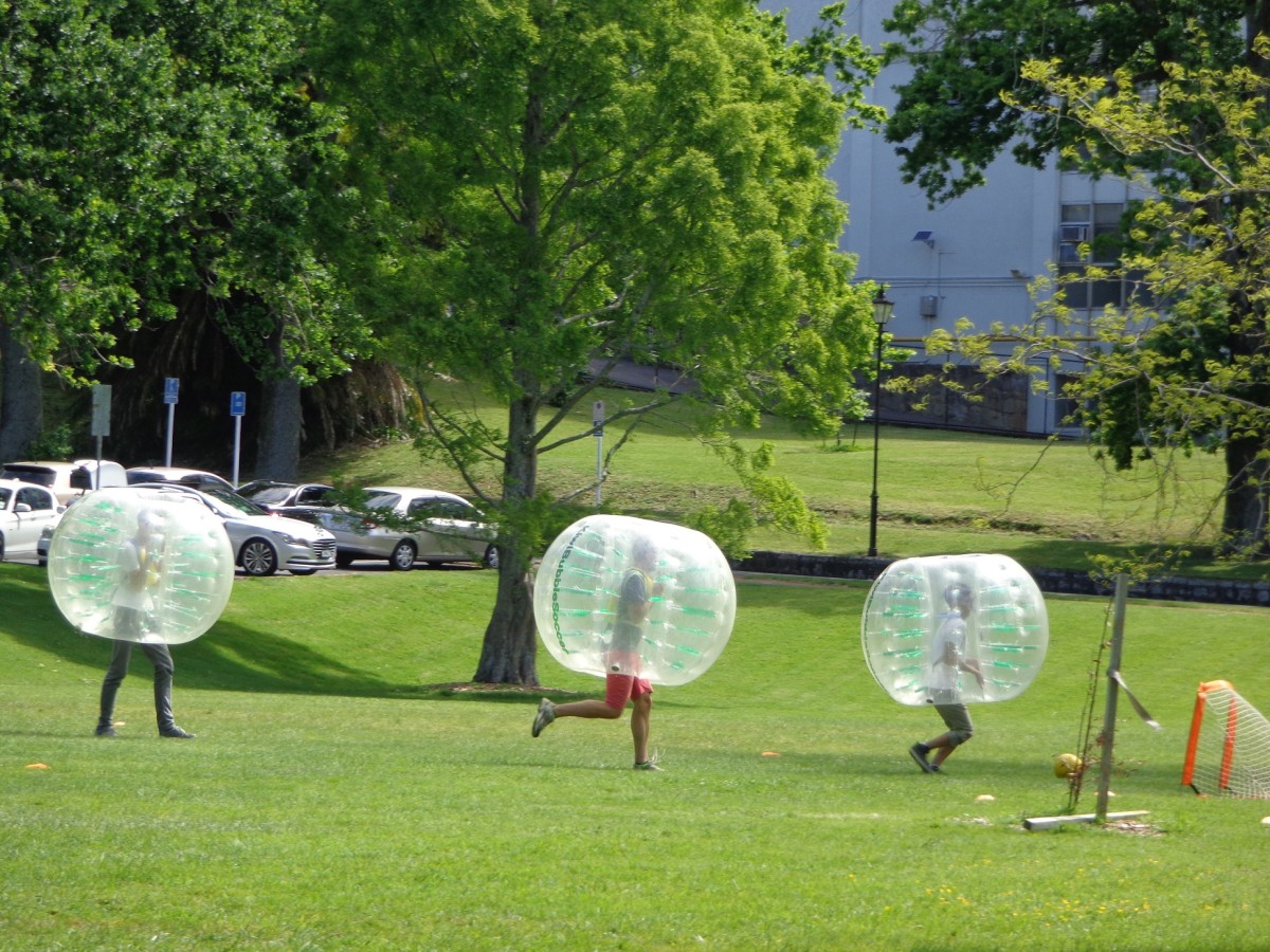 Auf dem Spazierung konnten wir uns auch von der sportlichkeit der Neuseeländer überzeugen. Neben Cricket, das wir auch nach einer Stunde zuschauen nicht begriffen haben, haben wir eine neue Sportart entdeckt „BubbleSoccer“ (Fussball), hätte uns wahrscheinlich auch Spaß gemacht!!